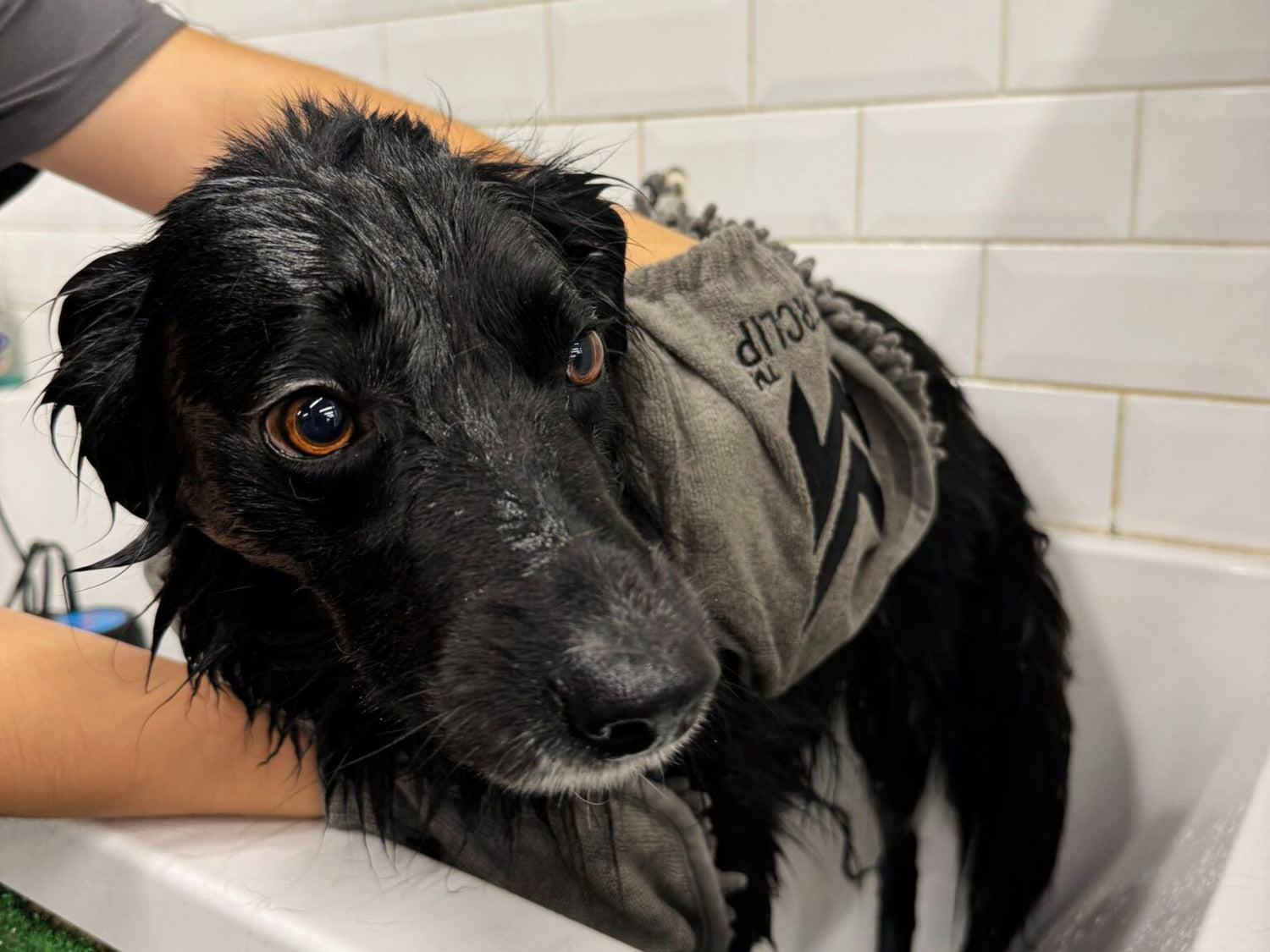 Dry your dog in a flash with the Masterclip microfibre noodle quick drying chenille towel. No more soggy towels and wet paw prints! Our Super Absorbent Microfibre Noodle Towel is specially designed to make drying your dog quick, easy, and mess free.