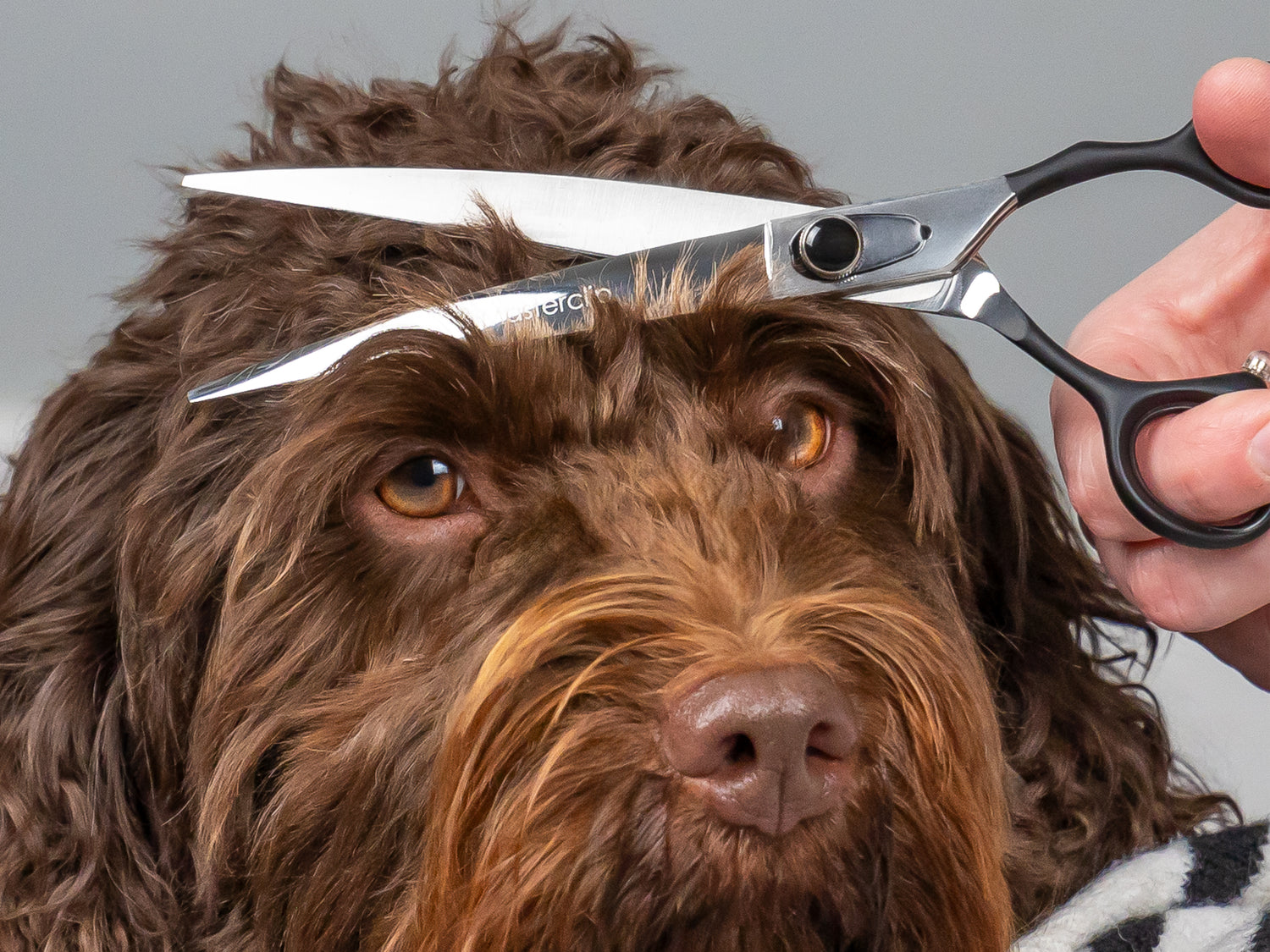 The bulk of the hair can easily be removed with the thinning scissors, which help to leave a soft and natural finish, whereas the straight edged finished scissor will produce fine show cut sharp edges. For all delicate and hard to reach areas, the bull nose scissors are just the job being ideal for the pads and back end for sanitation purposes and the curved scissors will make light work of any shaping, so good for styling around the ears, ribs and haunches.